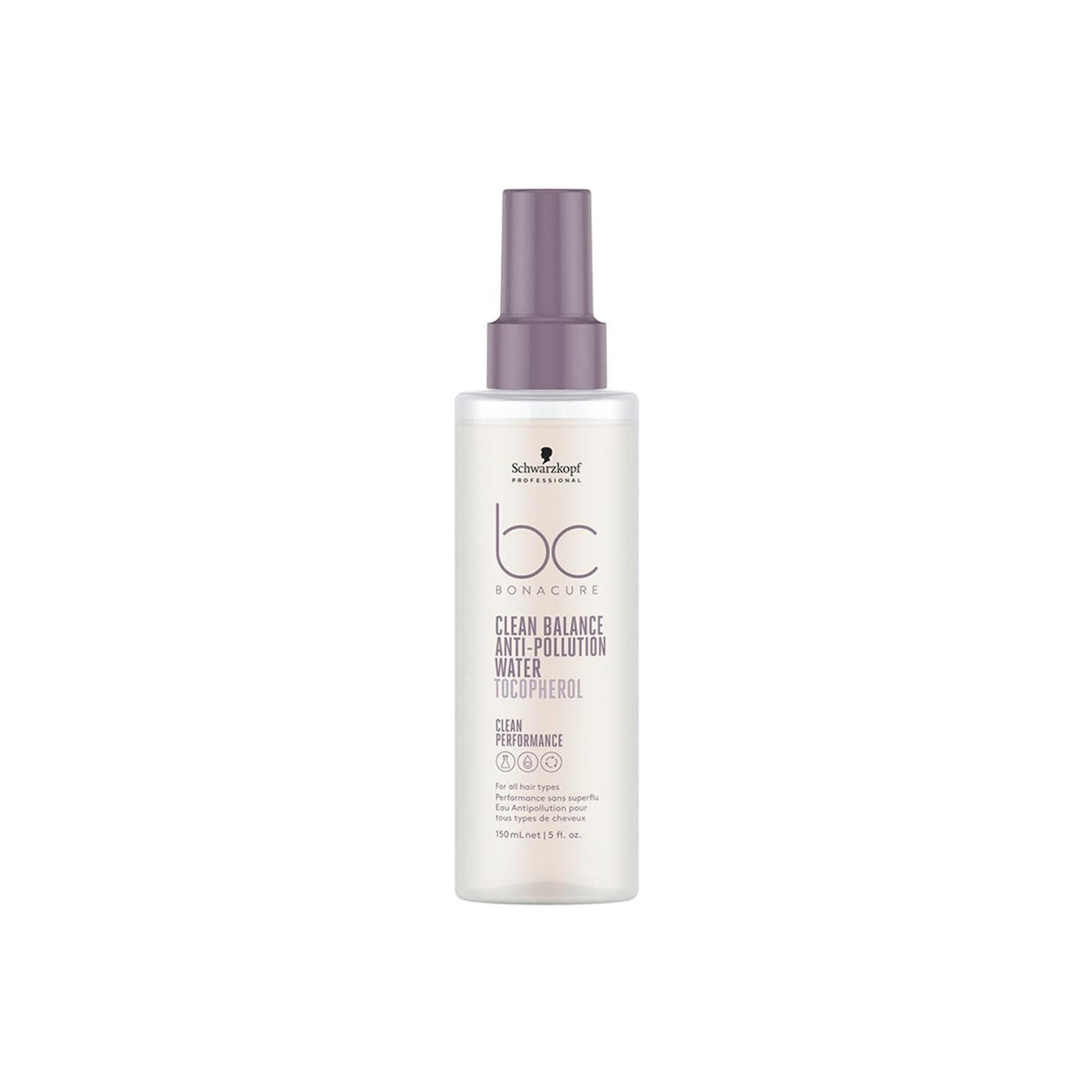Agua anticontaminación de fórmula vegana líquida ultraligera de la línea Bonacure Clean Balance que contiene Tocoferol que lucha contra los radicales libres y crea una capa fina en la superficie capilar y protege frente a los restos de contaminación y del calor.