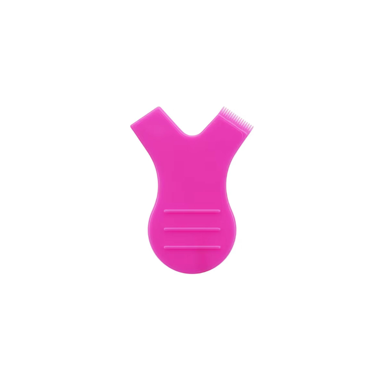 Fabricado en material plástico de alta resistencia y superficie lisa, cuenta con dos extremos funcionales: un lado plano diseñado para adherir y alisar las pestañas sobre el bigudí o posicionar las cejas, y un lado con micro-peine de dientes finos que separa cada vello individualmente, eliminando nudos y asegurando una distribución uniforme de los productos químicos.