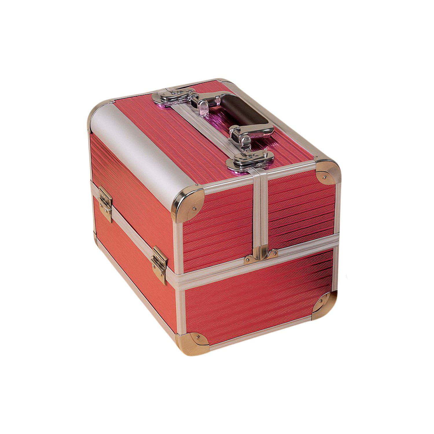 Su estructura robusta y sus acabados metálicos (disponible en un impactante Rojo Metálico o un clásico Negro Elegante) lo convierten en un compañero ideal para viajes, eventos o simplemente para tener tu tocador impecable.