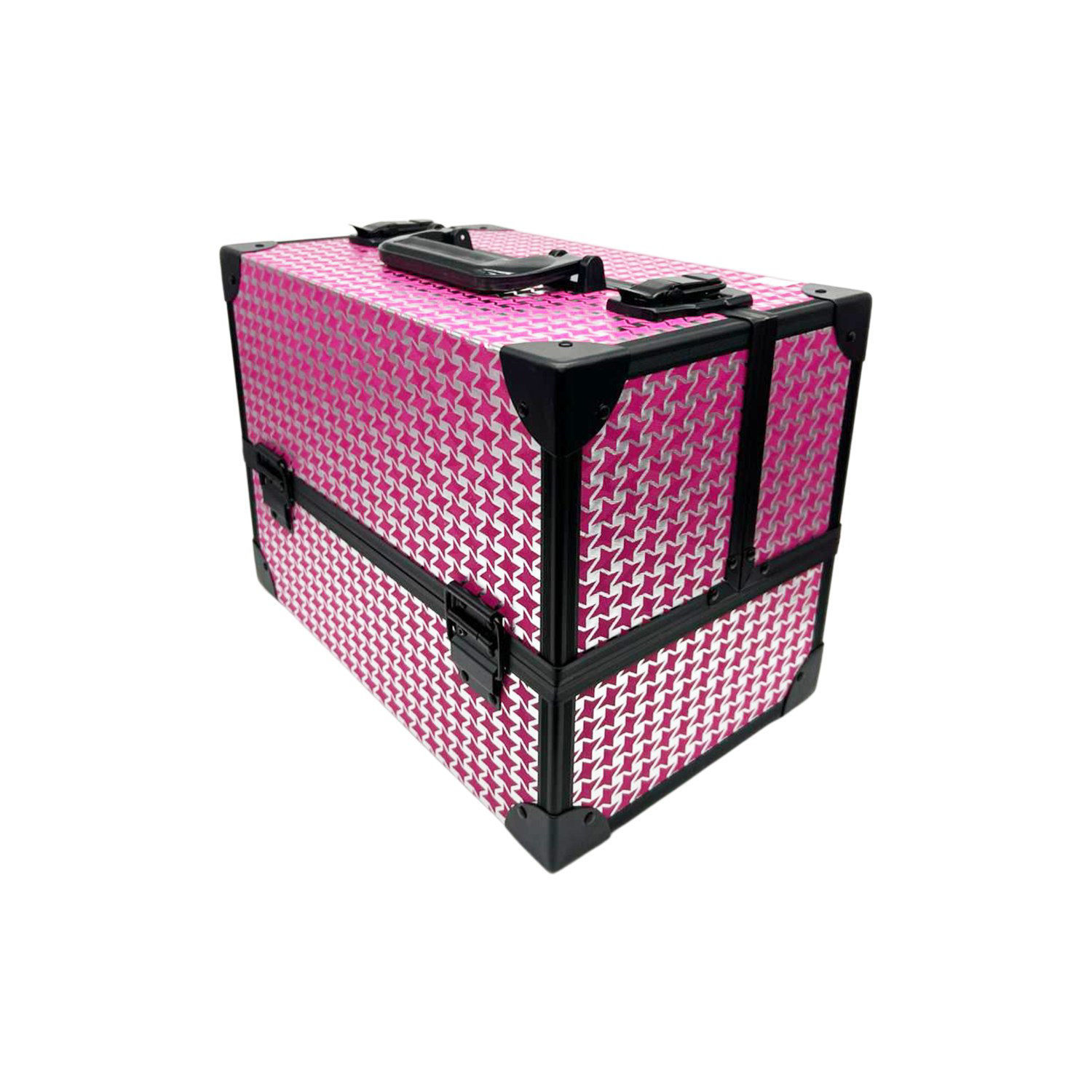 Construcción Robusta: Fabricado con un marco resistente y esquinas reforzadas en color negro, garantizando la protección de tus cosméticos durante el transporte.