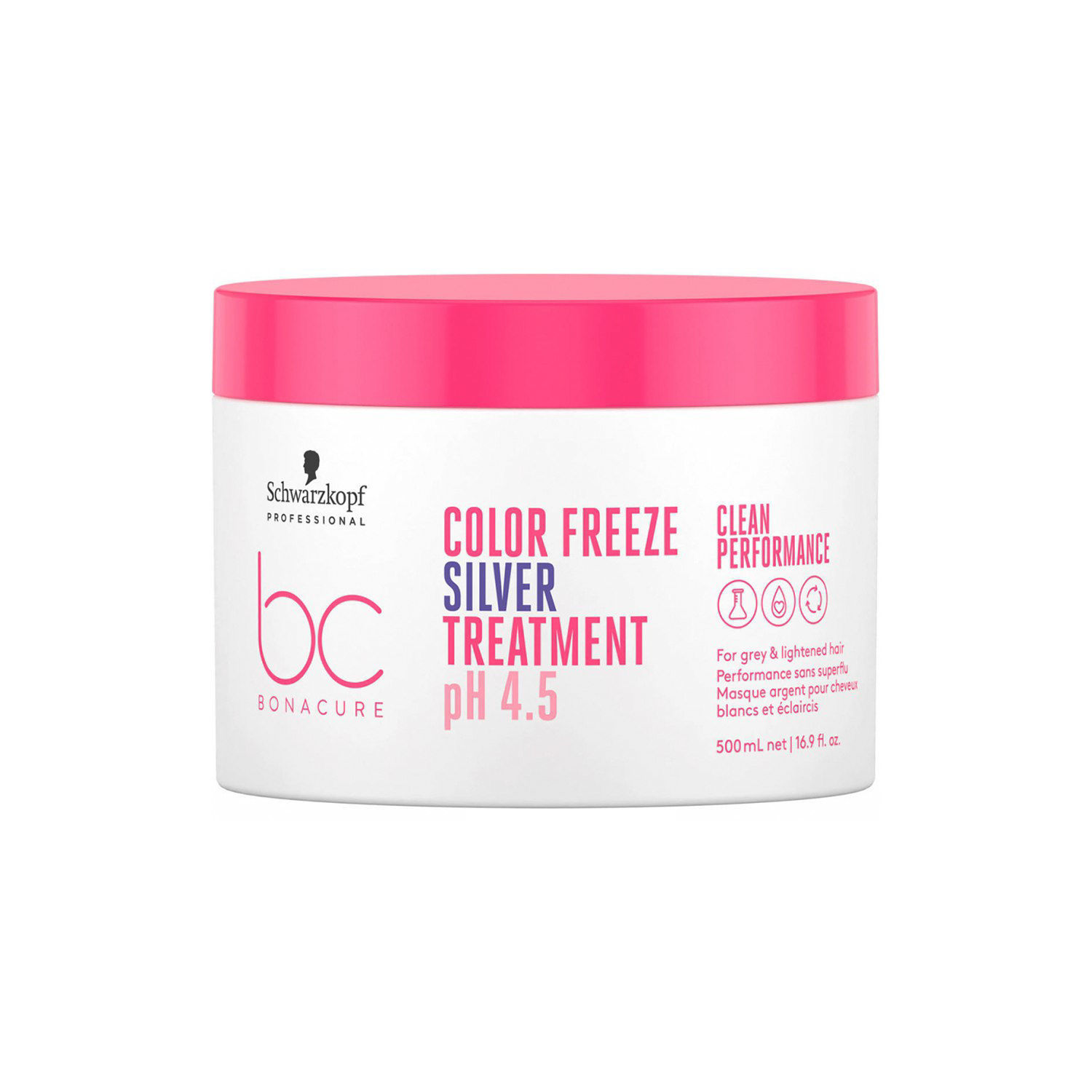 El Tratamiento Silver Color Freeze BC PH 4,5 de Schwarzkopf Professional es una fórmula avanzada diseñada especialmente para neutralizar y matizar los tonos amarillos no deseados en el cabello rubio, decolorado o con mechas. Formulado con la innovadora tecnología de pH 4,5, este tratamiento ofrece una protección excepcional del color, manteniendo el tono plateado o platinado por más tiempo.