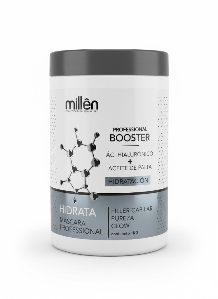 Millên ha creado un nuevo Booster, una innovadora fusión capilar con ácido hialurónico y aceite de palta, diseñada para hidratar profundamente y devolver la luminosidad natural del cabello. El ácido hialurónico actúa como un verdadero filler capilar, reteniendo agua en el interior de la fibra, rellenando zonas debilitadas y restaurando la elasticidad. El aceite de palta, rico en ácidos grasos esenciales y vitaminas A, D y E, nutre intensamente, sella cutículas y aporta suavidad inmediata. La sinergia entre ambos activos purifica y revitaliza la fibra, devolviendo al cabello pureza en su textura, frescura en su movimiento y un glow luminoso natural. Esta fórmula avanzada actúa en dos niveles: interno, aportando hidratación profunda y elasticidad; y externo, nutriendo, protegiendo y potenciando el brillo. El resultado es un cabello con filler capilar visible, pureza renovada y un glow radiante, reflejo de una salud capilar fresca, ligera y llena de vida.