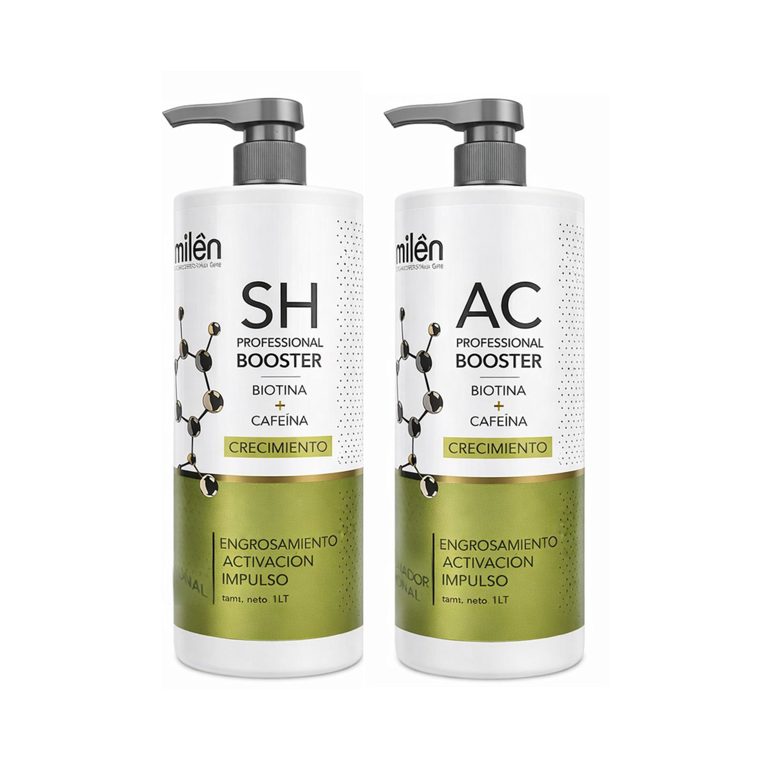 Millên ha creado un nuevo Booster, una innovadora fusión capilar con biotina y cafeína, diseñada para estimular el crecimiento saludable y aportar densidad visible al cabello. La biotina, reconocida como la vitamina de la fortaleza capilar, actúa sobre la queratina natural, reforzando la estructura interna de la fibra y contribuyendo al engrosamiento de cada hebra. La cafeína con átomos de oxígeno carbonílico (\bm{C=O}) facilitan su solubilidad y penetración cutánea asegurando que llegue al folículo piloso, con su acción energizante, promueve la microcirculación del cuero cabelludo, oxigena los folículos y potencia la activación del ciclo de crecimiento. La sinergia entre ambos activos ofrece un verdadero impulso de vitalidad, logrando que el cabello crezca más fuerte, resistente y con mayor cuerpo.