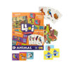 Viene con un dominó de 28 piezas, un juego de memoria de 36 piezas, un puzzle de 24 piezas y 36 cartas ilustradas con dibujos sobre animales en ingles, para aprender jugando el idioma!Recomendado para más de 3 años.