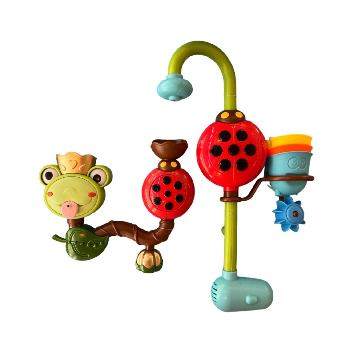 Presionando el botón negro, el dispositivo se enciende, succiona agua de la bañera y la vierte por la salida celeste.