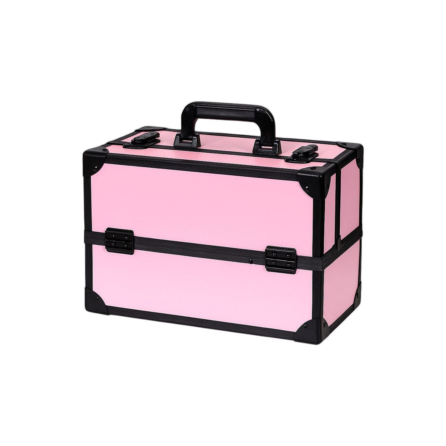 Este maletín organizador en combinación de rosa y negro es una solución compacta y funcional diseñada para optimizar el almacenamiento y transporte de productos de belleza.