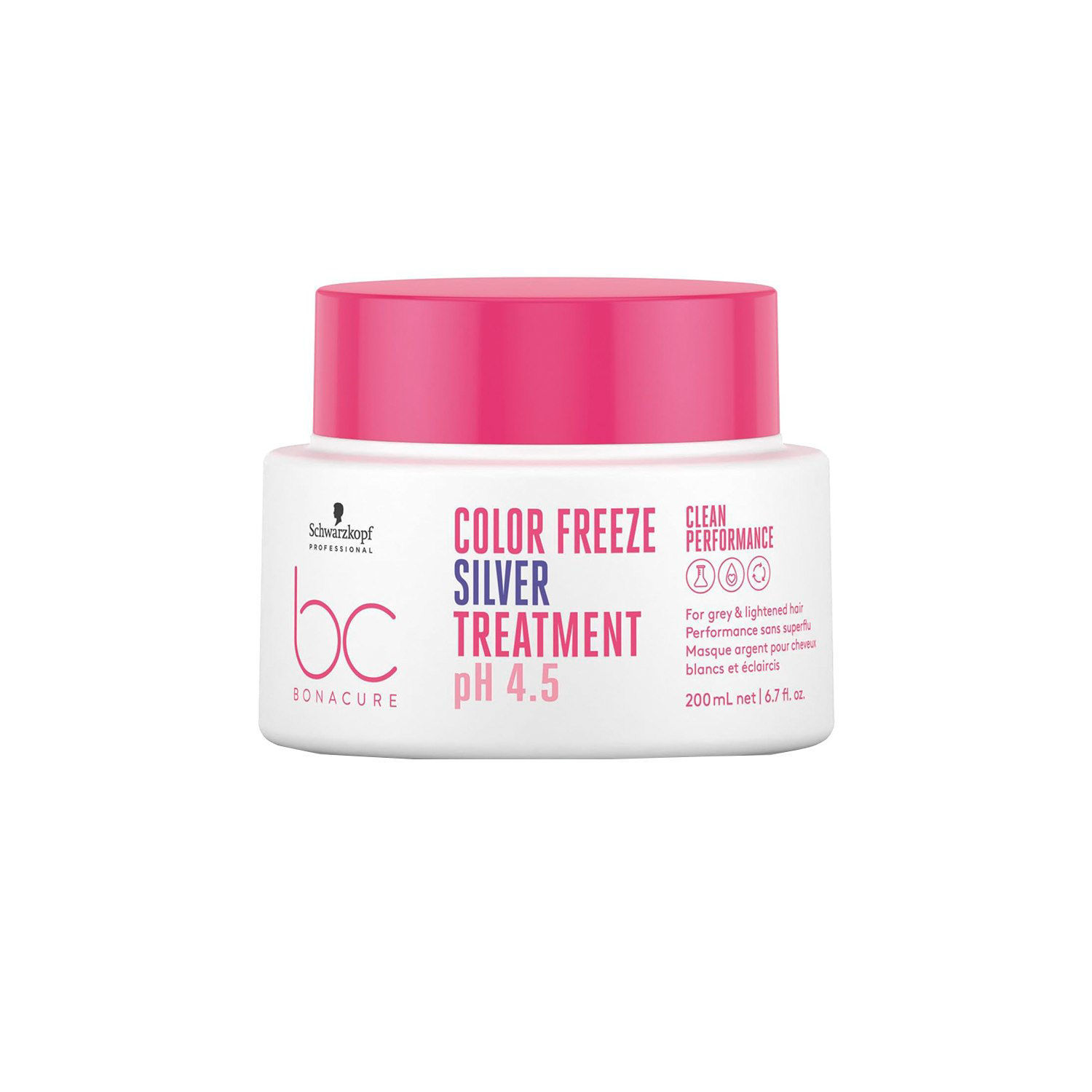 El Tratamiento Silver Color Freeze BC PH 4,5 de Schwarzkopf Professional es una fórmula avanzada diseñada especialmente para neutralizar y matizar los tonos amarillos no deseados en el cabello rubio, decolorado o con mechas. Formulado con la innovadora tecnología de pH 4,5, este tratamiento ofrece una protección excepcional del color, manteniendo el tono plateado o platinado por más tiempo.